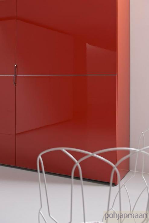 Модульные системы для спальни итальянской фабрики SMA. Шкаф с 2 дверями Цвет: матовый глянцевый лакированный красный/белый Ручки: хром Размер: Длина 292 см, глубина 62 см, высота 254 см.