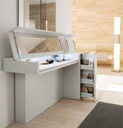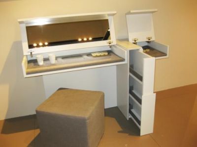 Туалетный столик PRESTIGE Размер: 132*55*h73 Материал: шпон ясеня, цвет - Tortora Цена: 62 440 руб. Выдвижной ящик с 3-мя емкостями, 2 крышки с зеркалами на пневмолифтах, 2 емкости для принадлежностей Варианты материалов: шпон белого ясеня, лакированный ясень 13 цветов, шпон белого ясеня с вышитой экологической коже.